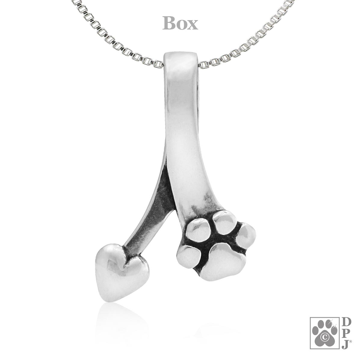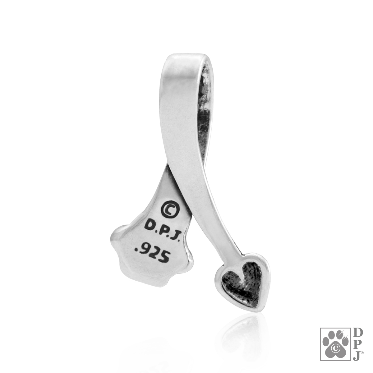 Der Anhänger Canine Ties of Love ist ein schlichter Anhänger mit einem modernen Herzen an einem und einem perfekten Pfotenabdruck am anderen Ende. Verbunden sind diese beiden Elemente durch ein starkes Band, durch welches auch eine unserer DPJ-Silberketten gefädelt werden kann.