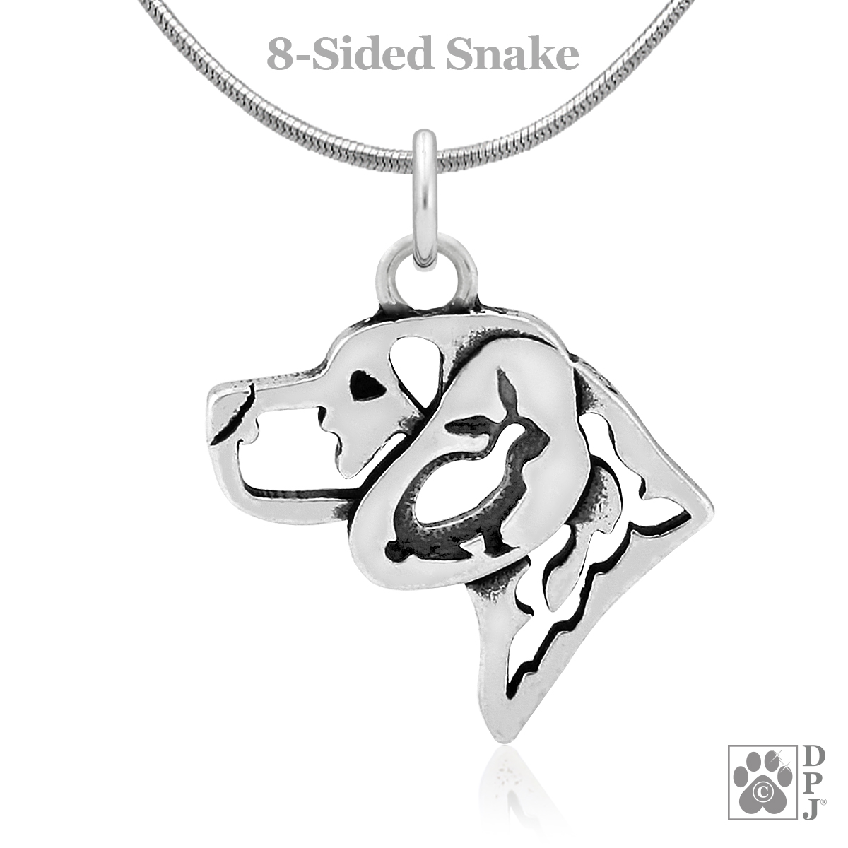 Unverkennbar ist bei diesem Anhänger die Kopfstudie eines Beagles dargestellt. Die gerade, quadratische Schnauze mit der großzügigen und herausragenden Nase, die sich hervorragend zum Sammeln von Düften eignet, ist eindeutig herausgearbeitet. Die sanften, dunklen Augen des Beagles bringen das Herz jedes Beagle-Besitzers zum Schmelzen, und die großen, langen und besonders weichen Ohren laden zum Kraulen ein. Doch wer genau hinsieht, entdeckt im Ohr des Beagles ein still sitzendes Kaninchen, das versucht, sich vor der guten Nase des Beagles zu verstecken. Es erinnert uns auch an die anstrengende Seite dieser lustigen aber äußerst jagdfreudigen Rasse.