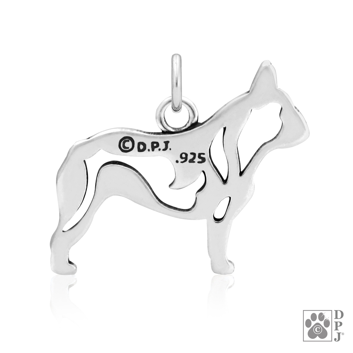 Das authentische Design des "Frenchie-Anhängers" unterstreicht die Wirkung dieser äußerst beliebten Hunderasse. Der muskulöse, kompakte Körperbau bleibt in der Gesamtheit ausgewogen proportioniert und trägt somit zur Schönheit dieser Rasse bei. Ein unverwechselbar starker und kurzer Rücken ist gepaart mit breiten Schultern und einer tiefen Brust. Und sogar die ach so kostbaren Falten, die zum Küssen einladen, sind fein herausgearbeitet!