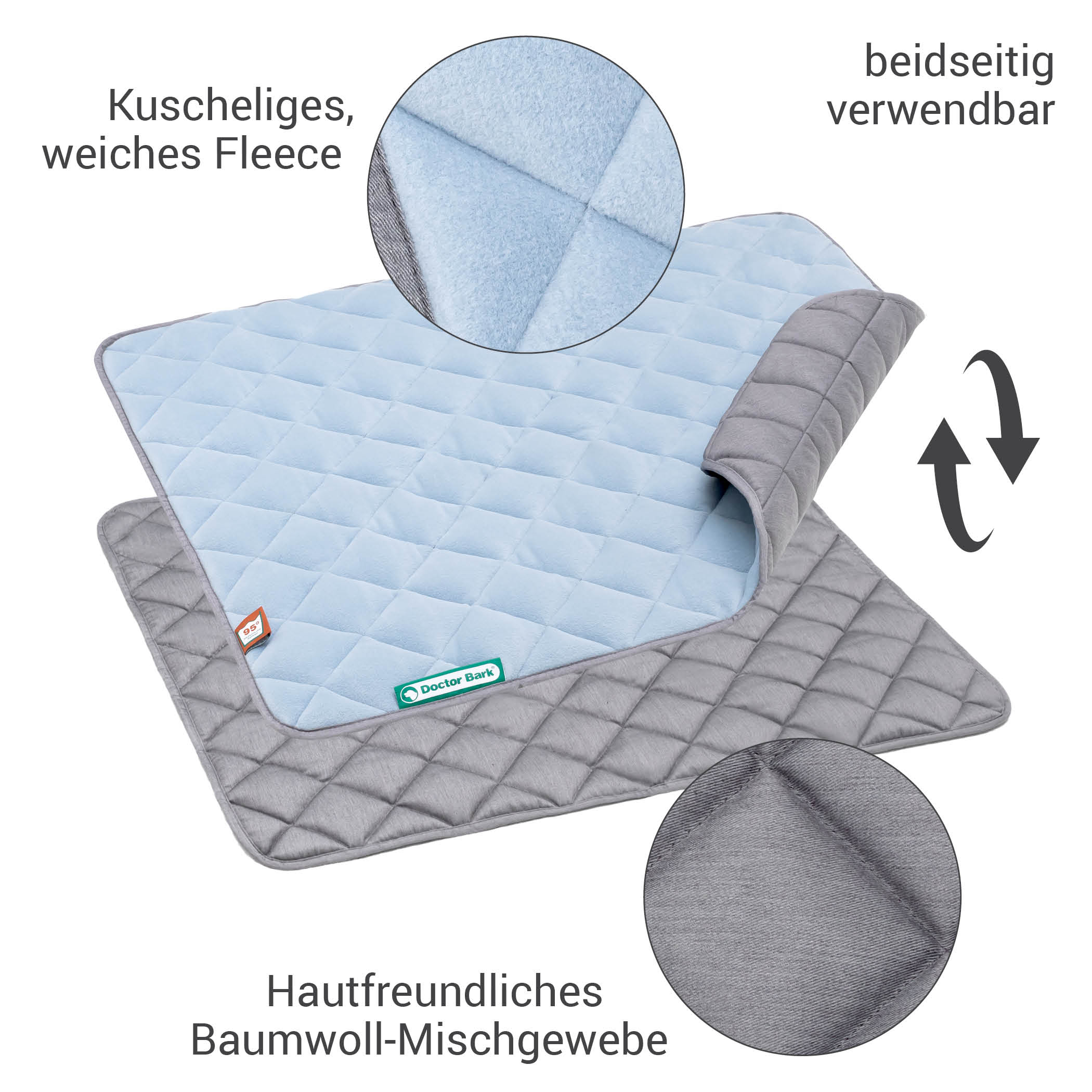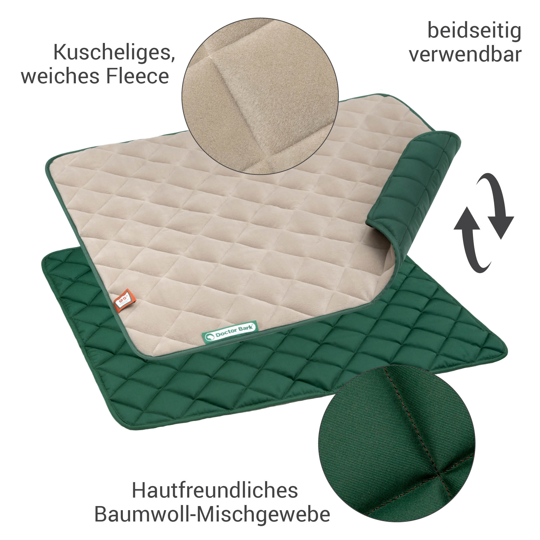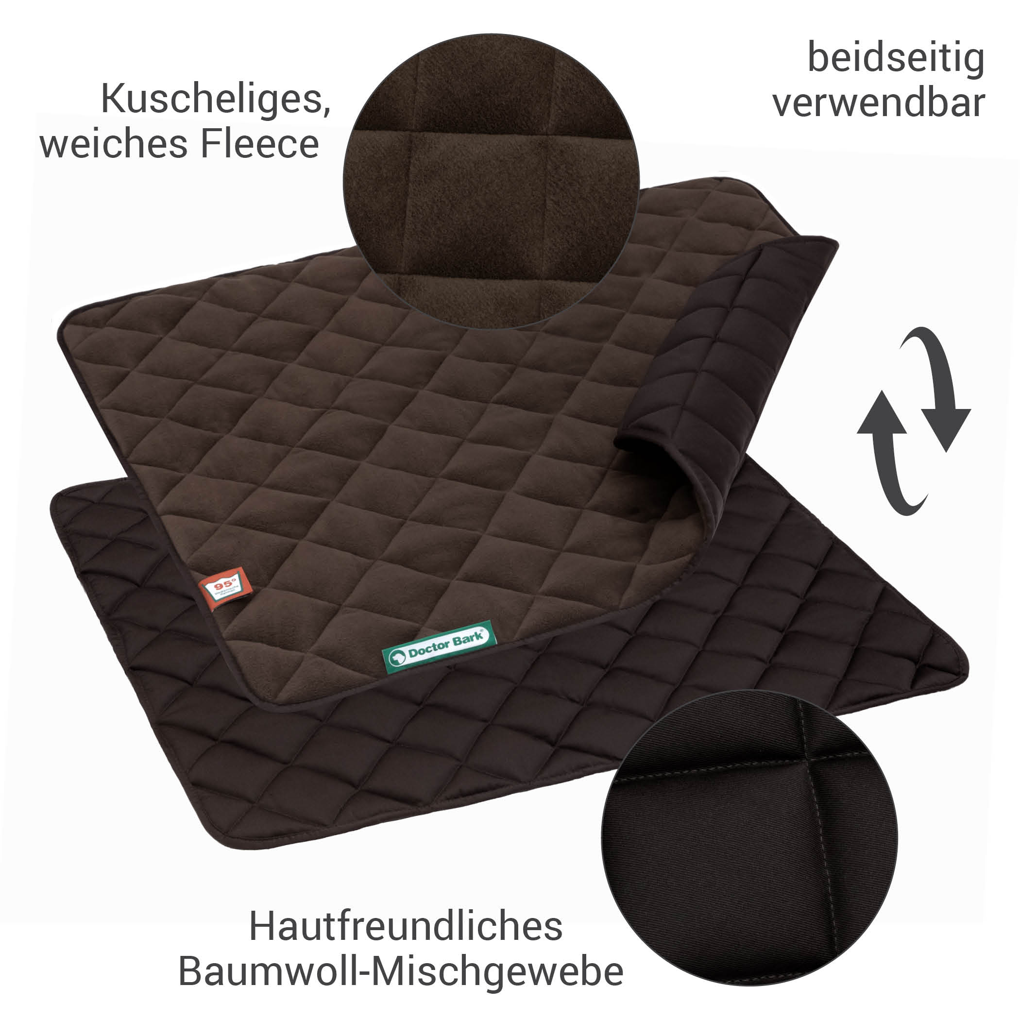 Fünf Farben, vier Größen! Dick und weich gepolstert mit kuschelig warmer Oberdecke schützt die Fleece Steppdecke Ihren Hund vor Bodenkälte und harten Böden. Der mobile und überall einsetzbare Rückzugsort lässt Ihren Hund bequem und sicher liegen, egal ob als Liegeplatz auf dem Boden oder Sofa, oder für unterwegs als Autodecke oder Outdoor-Decke. Wie alle Artikel von Doctor Bark sind auch die Fleece Steppdecken von hervorragender Qualität, robust und erstklassig verarbeitet und mit neutralen Farben zeitlos im Design. Selbstverständlich ist auch hier eine hygienische Wäsche bei 95°C möglich, welche das Bett von Schmutz, Keimen, Parasiten und unangenehmen Gerüchen zuverlässig befreit.